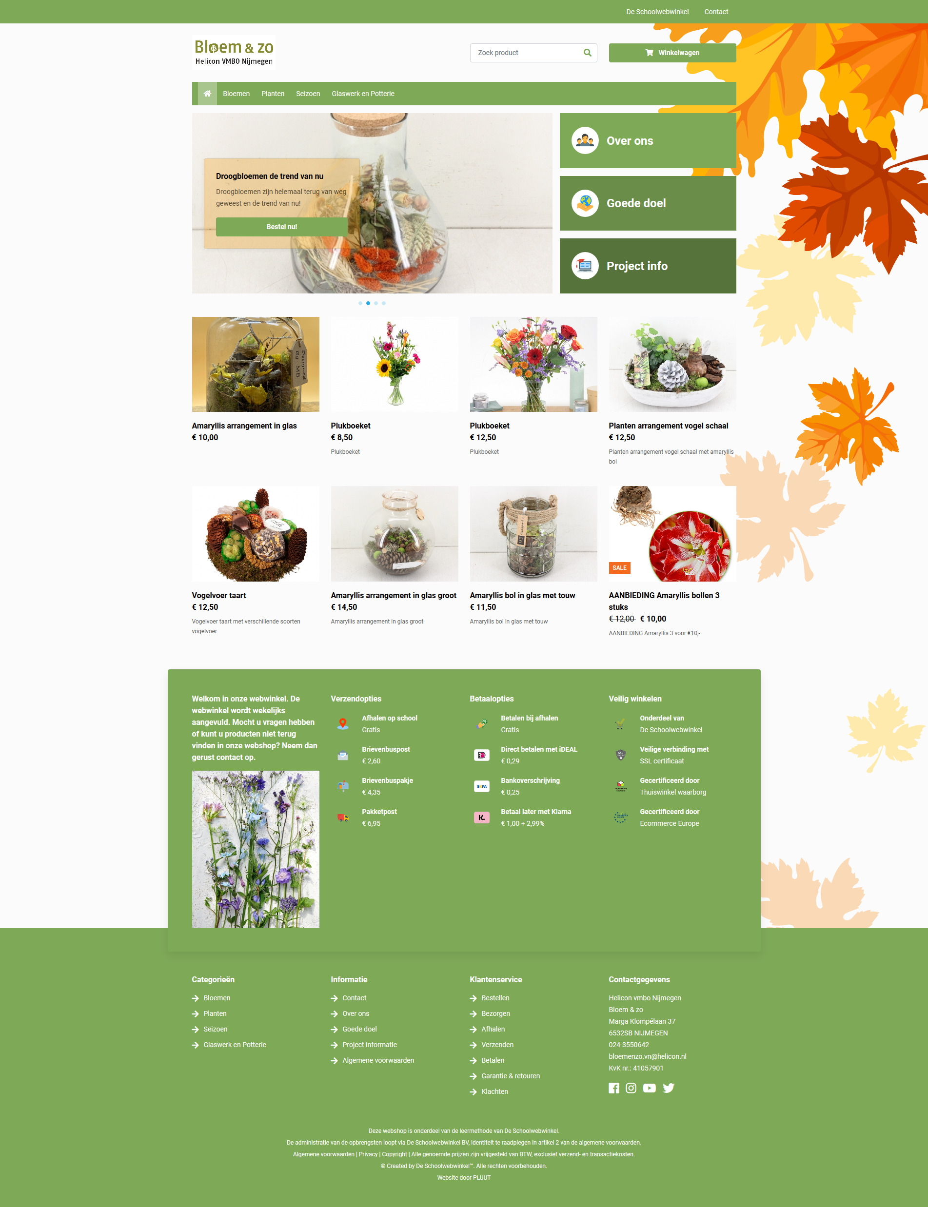 Op donderdagmiddag en vrijdag runnen de leerlingen de eigen bloemenwinkel en de bijbehorende webshop om zo in de praktijk te leren wat daar allemaal bij komt kijken. Er worden prachtige bloemstukken gemaakt. Verkoop én het klantcontact regelen ze zelf. Komt u een kijkje nemen?